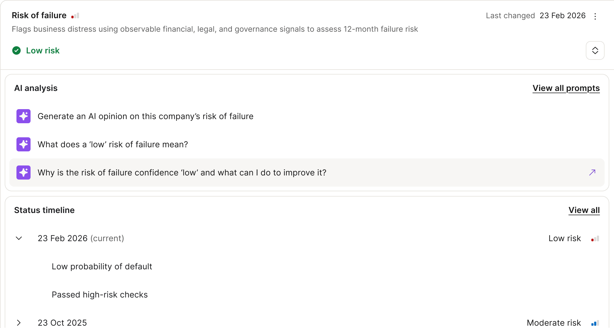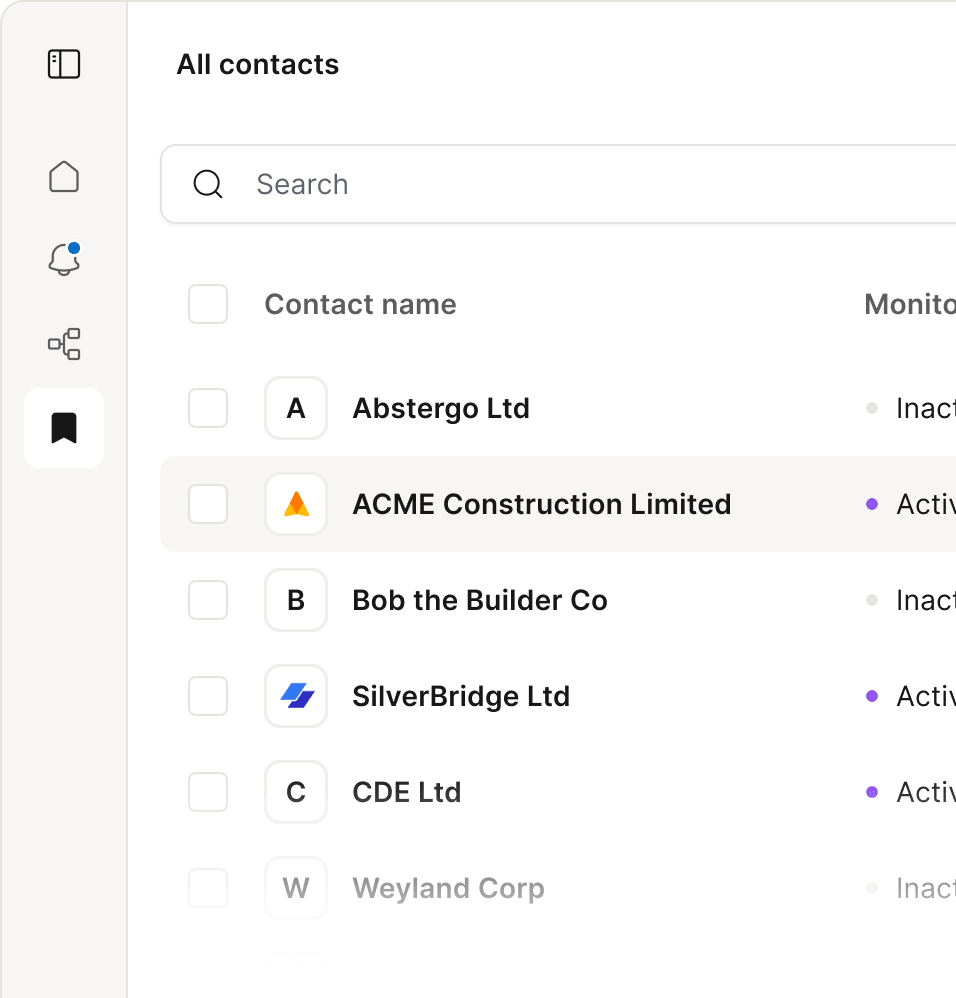 Early signals flag events like notice of strike-offs and administration or sudden changes as they appear — so you can act before they impact the numbers.