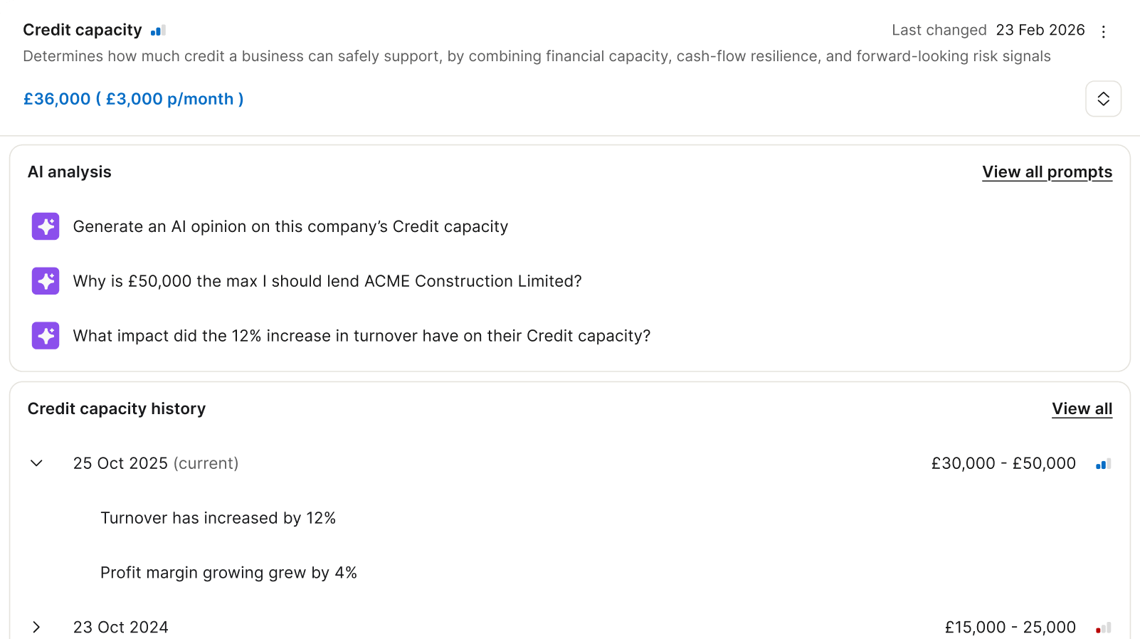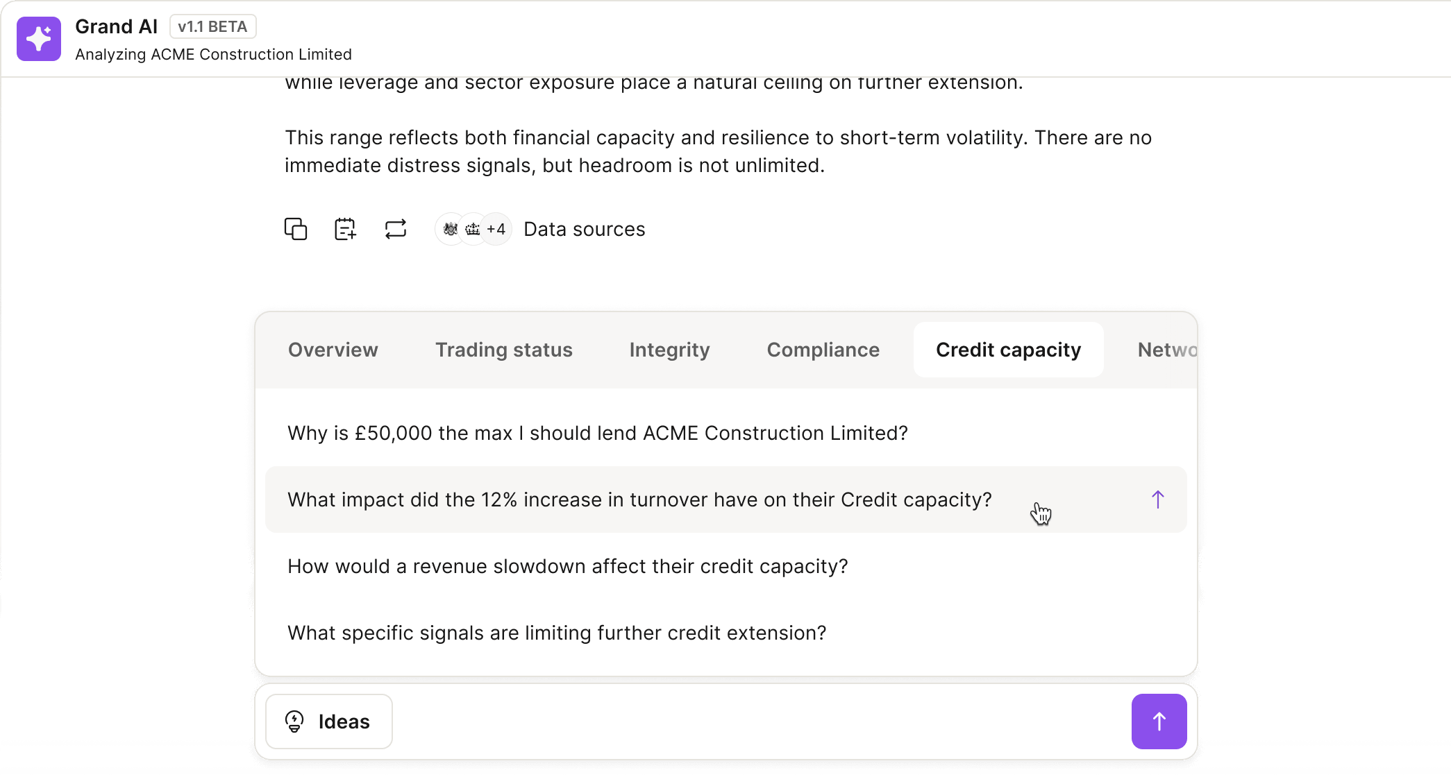 How much exposure can a trade partner realistically support? Grand combines liquidity, cashflow, and forward-looking risk signals to give you annual capacity and a monthly limit.