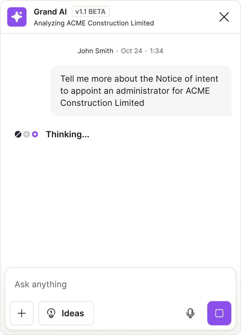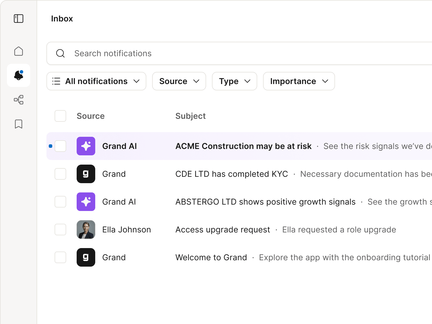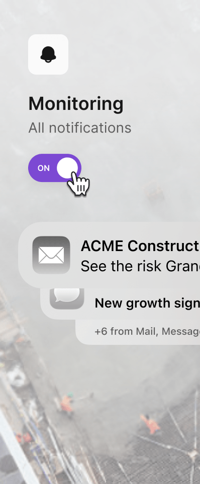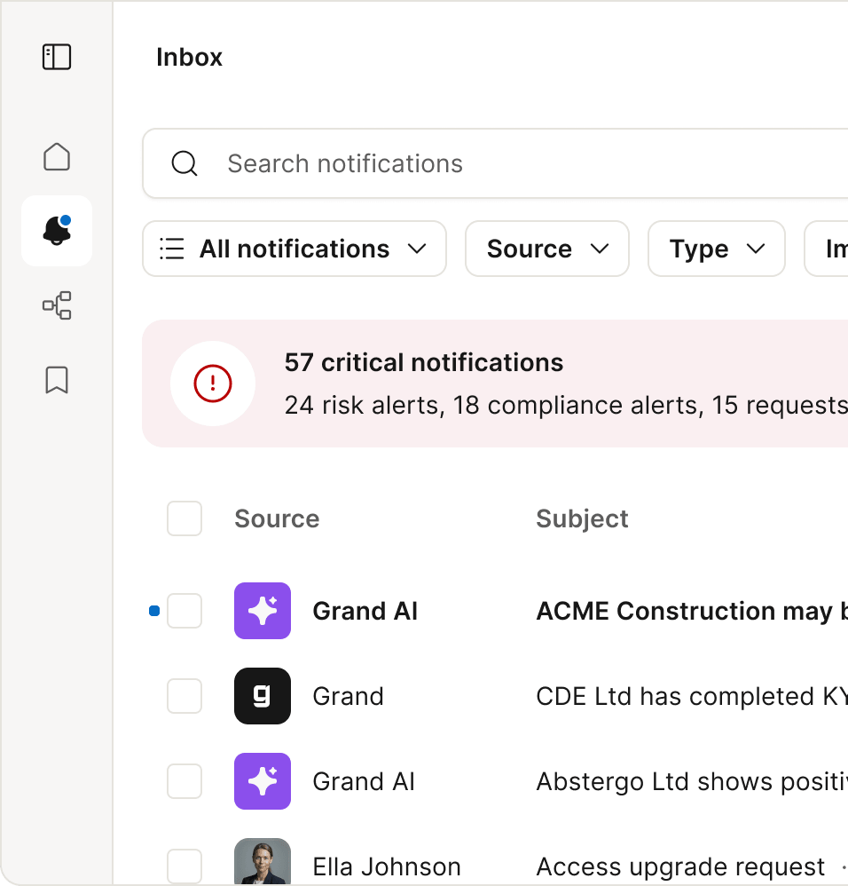 Grand notifies you when something meaningful shifts — risk, filings, or trading behaviour. You'll know when it happens — before it impacts you.